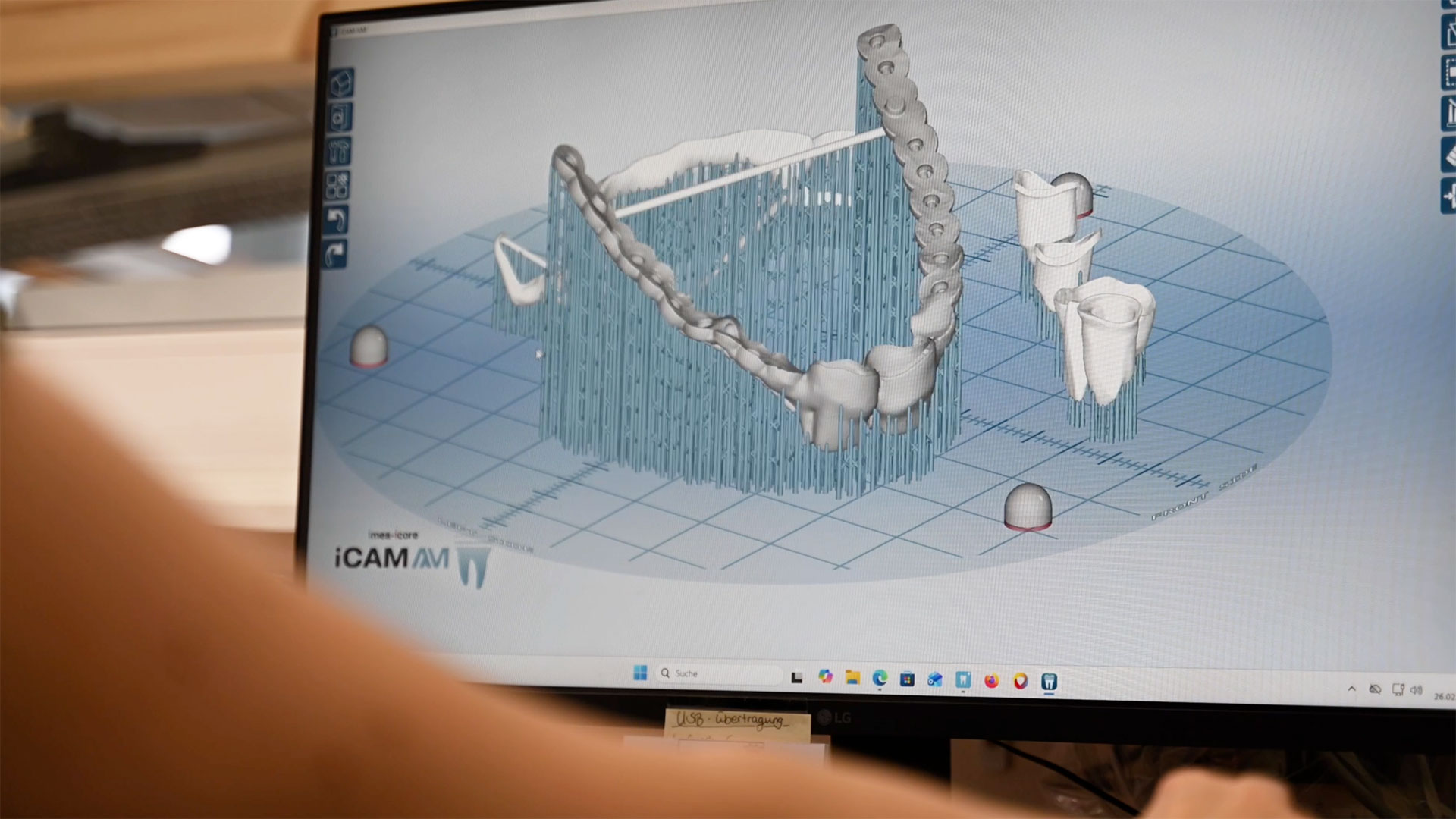 Auf dem Weg zur automatisierten Massenfertigung in der Zahntechnik ist die digitale Anbindung an die Fräsmaschine ein wichtiges Kriterium. Dafür haben Experten die IT-Schnittstelle von additiven Fertigungssystemen erweitert. Der hybride Workflow ermöglicht es, Implantat getragenen Zahnersatz und Teleskopteile zu drucken sowie anschließend frästechnisch nachzubearbeiten. Dank der hochpräzisen Ergebnisse können Implantat- und Zahnersatz sicher verschraubt werden. Dabei wird die SLM-Technologie im Hybridverfahren mit der Frästechnologie vereint. Die Sekundärstruktur, inklusive Modellguss, wird additiv gefertigt und anschließend werden feine Details im CAD/CAM Verfahren nachgefräst. Ergebnis ist eine passgenaue Einstückstruktur, das bedeutet ein Gerüst ohne Lot und Fügestellen.